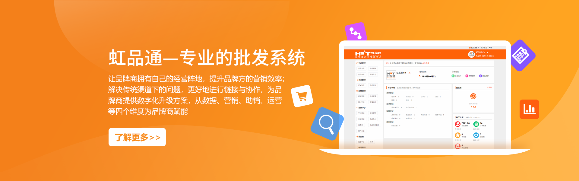 南寧虹品通軟件科技有限公司成立于2014年,是一家開發(fā)軟件技術(shù)服務(wù)公司。公司總部位于中國綠城南寧市,專注軟件行業(yè)系統(tǒng)支持和供應(yīng)鏈大數(shù)據(jù)開發(fā),并將其應(yīng)用于商業(yè)領(lǐng)域。掌握供應(yīng)鏈系統(tǒng)研發(fā)、商品流通大數(shù)據(jù)、批發(fā)零售商城等核心技術(shù),并持有多項技術(shù)專利和著作權(quán)。公司致力于幫助生產(chǎn)廠家、商品流通、銷售型企業(yè)向互聯(lián)網(wǎng)化轉(zhuǎn)型升級,利用互聯(lián)網(wǎng)獲取客戶、洞察市場、服務(wù)客戶